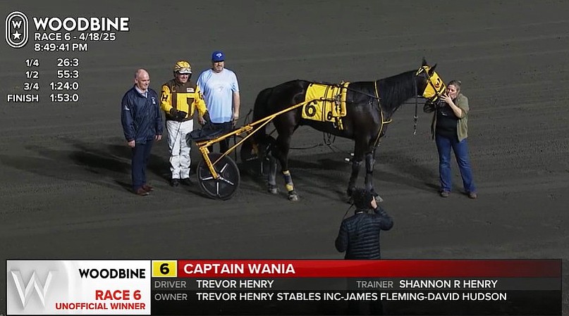 Captain Wania (Resolve - Miss Everything) avasi kautensa yllätysvoitolla 18.4.25 Woodbine Mohawkin radalla.
