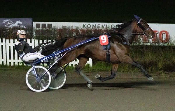 Katja Melkon talliin siirtynyt Hamilton L.C. voitti 7.11.25 Rättvikin radalla.
